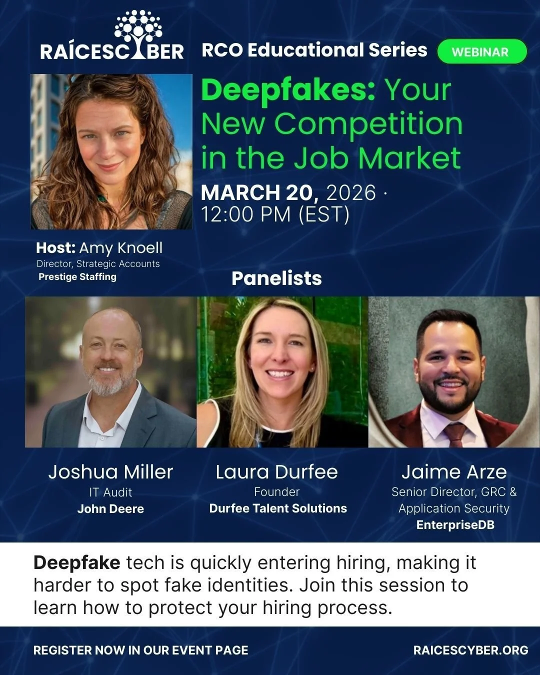 Raíces Cyber’s Podcast Series profiles the journey of cybersecurity professionals. In their podcast interview, they will share why they were inspired to pursue cybersecurity as a career, how they paved their way, how they landed their first job, and their professional advice.